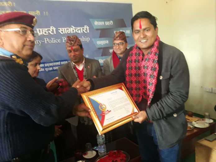 पर्वत, पुस २७-नेपाल प्रहरीले पर्वत जिल्लाका सातवटै स्थानीय तहलाई प्रशंसा पत्रले सम्मान गरेको छ । पर्वत जिल्लामा प्रहरीले संचालन गरेको समुदाय–प्रहरी साझेदारी कार्यक्रमलाई गण्डकी प्रदेशमै उत्कृष्ट बनाउन महत्वपुर्ण भूमिका खेलेको भन्दै प्रहरी प्रधान कार्यालयले पर्बतका स्थानिय तहलाई सम्मान गरेको हो । कुश्मा नगरपालिकाका नगरप्रमुख रामचन्द्र जोशी, फलेवास नगरपालिकाका नगरप्रमुख पदमपाणी शर्मा, जलजला गाउँपालिकाका अध्यक्ष यामबहादुर मल्ल रामकृष्ण, मोदी गाउँपालिकाका अध्यक्ष प्रेम पौडेल, विहादी गाउँपालिकाका उपाध्यक्ष डम्बरकुमारी गुरुङ र महाशीला गाउँपालिकाका प्रवक्ता जीवन विक्रम उच्चैलाई प्रसंसा पत्र प्रदान गरिएको हो । कार्यक्रममा जिल्ला समन्वय समिति पर्वतका प्रमूख मनोहर बि पौडेलले समुदाय–प्रहरी साझेदारी कार सफल भएको बताउनुभयो । उहाँले सरकारले अघि सारेको सुखि नेपाली समृद्ध नेपाललाई सफल पार्नका लागि पनि यो कार्यक्रम महत्वपुर्ण बनेको बताउँदै यस्ता कार्यक्रमहरुलाई निरन्तरण दिनुपर्ने बताउनुभयो । फलेवास नगरपालिकाका नगरप्रमुख पदमपाणी शर्माले समुदायका हरेक पक्षमा प्रहरी अनिवार्य जस्तै भैसकेको अवस्थामा प्रहरीलाई साधन र श्रोतले सम्पन्न गराउनुपर्ने बताउनुभयो । उहाँले प्रत्येक स्थानीय तहमा प्रहरीको पहुँचलाई बृद्धि गर्नुपर्नेमा जोड दिँदै स्थानीय सरकारपनि आगामी दिनमा सहकार्य गरेर अघि बढ्न तयार रहेको बताउनुभयो । कार्यक्रममा जलजला गाउँपालिकाका अध्यक्ष यामबहादुर मल्ल रामकृष्णले जलजला गाउँपालिकामा इलाका प्रहरी कार्यालय स्थापनाको माग गर्नुभएको छ । उहाँले प्रहरी र स्थानीय तहबीच राम्रो सहकार्य भएको बताउँदै आगामी दिनमा शान्ति सुरक्षालाई प्रभावकारी बनाउन सहकार्यको खाँचो रहेको बताउनुभयो । उहाँले पर्बतमा नयाँ प्रहरी प्रमुख श्याम अर्याल र प्रमुख जिल्ला अधिकारी कल्पना घिमिरे नेपाल आयपछि सबैसंग समन्वय भयको पनि बताउनुभयो । सो अवसरमा गण्डकी प्रदेशका प्रहरी प्रमुख डिआईजी बिनोद शर्मा घिमीरेले जनताको बिचमा प्रहरी जाने यो भन्दा राम्रो कार्यक्रम आगामी दिन आउन नसक्ने बताउनुभयो । समुदायलाई सचेतीकरण गर्नका लागि यो कार्यक्रम सफल भएको बताउँदै शिक्षा, स्वास्थ्य र अपराध न्यूनिकरणमा यो कार्यक्रमको भूमिका महत्वपुर्ण देखिएको बताउनुभयो । कार्यक्रममा नेपाल पत्रकार महासंघ पर्बतका अध्यक्ष छबिलाल तिवारी, पर्वत उद्योग बाणिज्य संघका अध्यक्ष केदारनाथ शर्मा, सामुदायिक प्रहरी सेवा केन्द्रका अध्यक्ष शिवप्रसाद सुवेदी लगायतले बोल्नुभएको थियो । २०७५ कात्तिक देखि शुरु भएको समुदाय–प्रहरी साझेदारी कार्यक्रम अन्तर्गत पर्वत प्रहरीले विभिन्न १२ वटा व