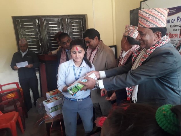 लायन्स क्लब अफ पर्वत वृजसिटीका अध्यक्ष देवीप्रसाद विलासीको अध्यक्षतामा भएको कार्यक्रमको सञ्चालन संस्थाका सचिव शिवप्रसाद शर्माले गरेका थिए । कार्यक्रममा लायन्स क्लबका कलस्टर चिफ बिषमकुमार श्रेष्ठ, लायन्स क्लबका जनसम्पर्क अधिकारी द्वय कमलनाथ पोखरेल र अर्जुन चापागाई, नेपाल पत्रकार महासंघ पर्वतका अध्यक्ष छविलाल तिवारी, नेपाल पत्रकार महासंघ पर्वतका पूर्व अध्यक्ष एवं रेडियो शालिग्राम पर्वतका स्टेशन म्यानेजर ओमप्रसाद घायल, लायन्स क्लब अफ शिबालयका अध्यक्ष डिआर शर्मा लगायतको सहभागिता रहेको थियो । कार्यक्रममा विद्यालयका ३१ जना छात्र छात्राहरूलाई एक÷एक दर्जनका दरले कपी र विद्यालयलाई पाँच थान ह्वाइट वोर्ड वितरण गरिएको थियो ।