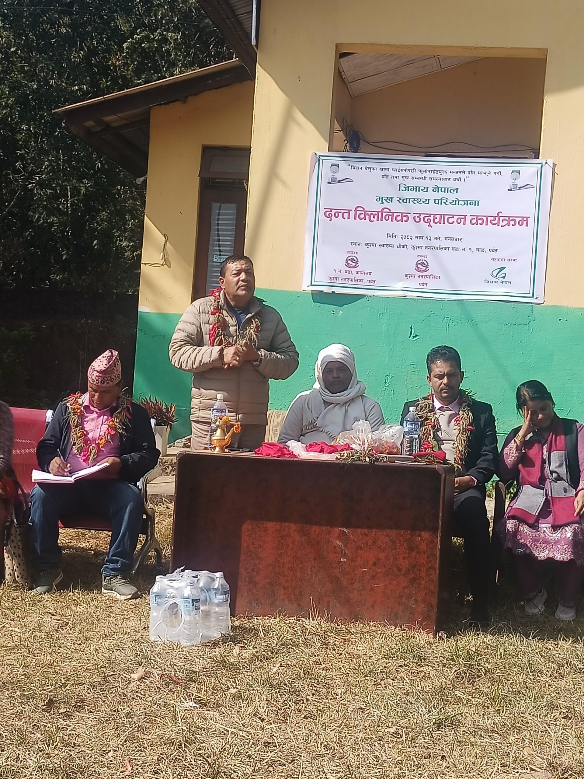 पर्वत/कुश्मा नगरपालिकाका छ वटा वडामा मुख स्वास्थ्य परियोजना सञ्चालन गरिरहेको जिभाय नेपालले कुश्मा स्वास्थ्य चौकी पाङमा दन्त क्लिनिक सञ्चालनमा ल्याएको छ । मुख स्वास्थ्य सम्बन्धी समस्याहरुलाई न्यूनीकरण गर्ने र जनचेतना फैलाउने उद्देश्यले कुश्मा नगरपालिकासंगको सहकार्यमा वडा नम्बर १, २, ६, ९ र ११ मा सञ्चालित परियोजना अन्र्तगत पाङमा दन्त क्लिनिक सञ्चालनमा ल्याइएको हो ।